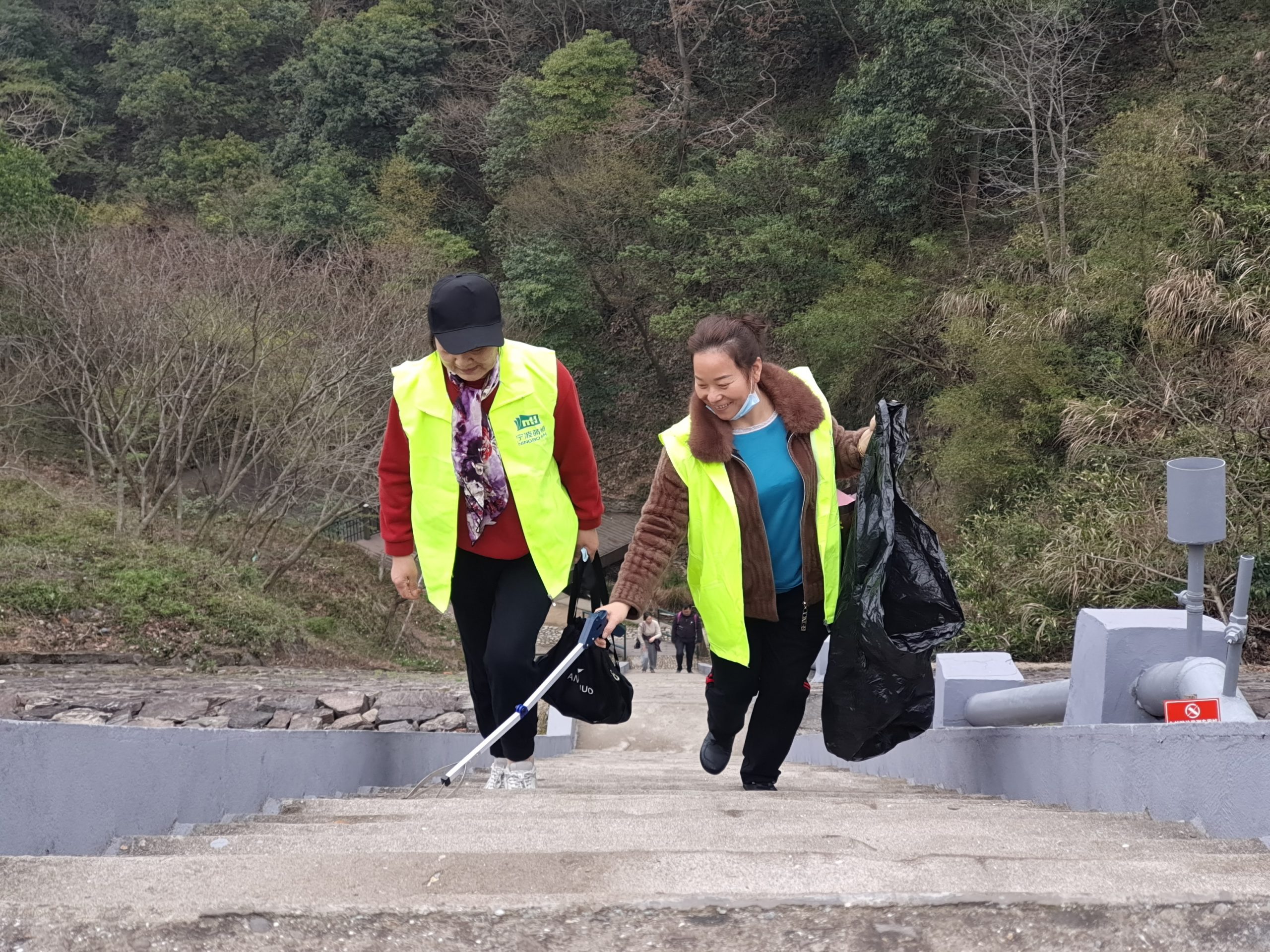登山步道上,一個(gè)個(gè)亮綠色的身影穿梭在龍鷲山的各個(gè)角落,在自然的美好中享受著“有氧體驗(yàn)”,一次次彎腰,一次次蹲起,不放過(guò)任何一個(gè)細(xì)微角落。在一個(gè)多小時(shí)的徒步中,小伙伴們?nèi)齼蓛山Y(jié)伴而行,認(rèn)真地?fù)焓奥啡藖G棄的煙蒂、碎紙屑、塑料袋、瓜皮果殼、食品包裝袋、生活垃圾等,不但收獲了滿滿的“戰(zhàn)利品”,更獲得了心靈上的滿足。