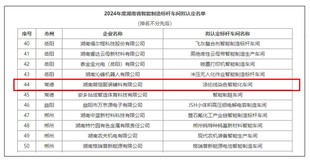 湖南萌恒滌綸線廠獲評2024年度湖南省智能制造標桿車間