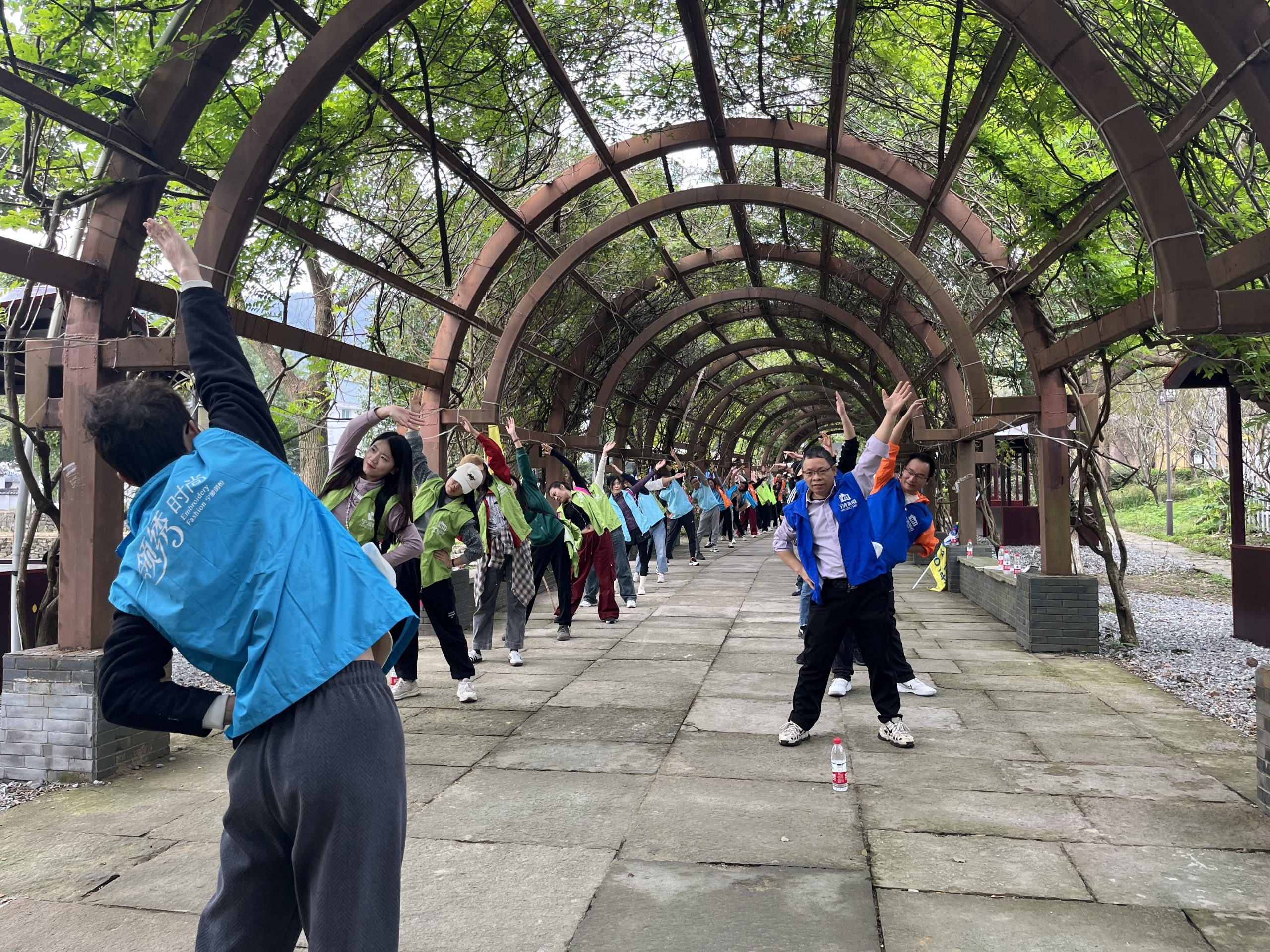 活動當(dāng)天,天公作美,早上8時許,8支隊伍的80多名伙伴乘坐大巴車前往目的地。短短半小時車程,眨眼即過,8支隊伍順利集結(jié),隨即展開了熱身運動。熱身完畢,大家在長廊集合拍照。這里,是2016年團建時留影之處,時隔8年,我們再次相聚,用鏡頭定格這美好的瞬間,也期待著下一個8年的重逢。