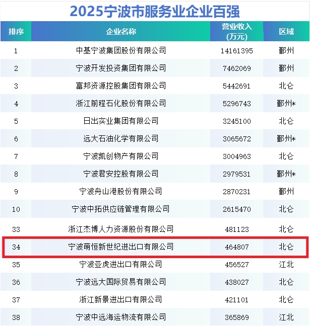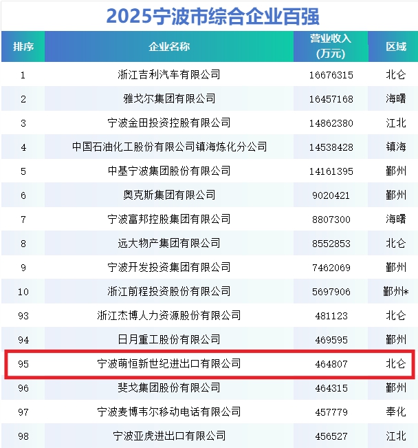 2025寧波企業(yè)百?gòu)?qiáng)榜發(fā)布,萌恒蟬聯(lián)雙榜!