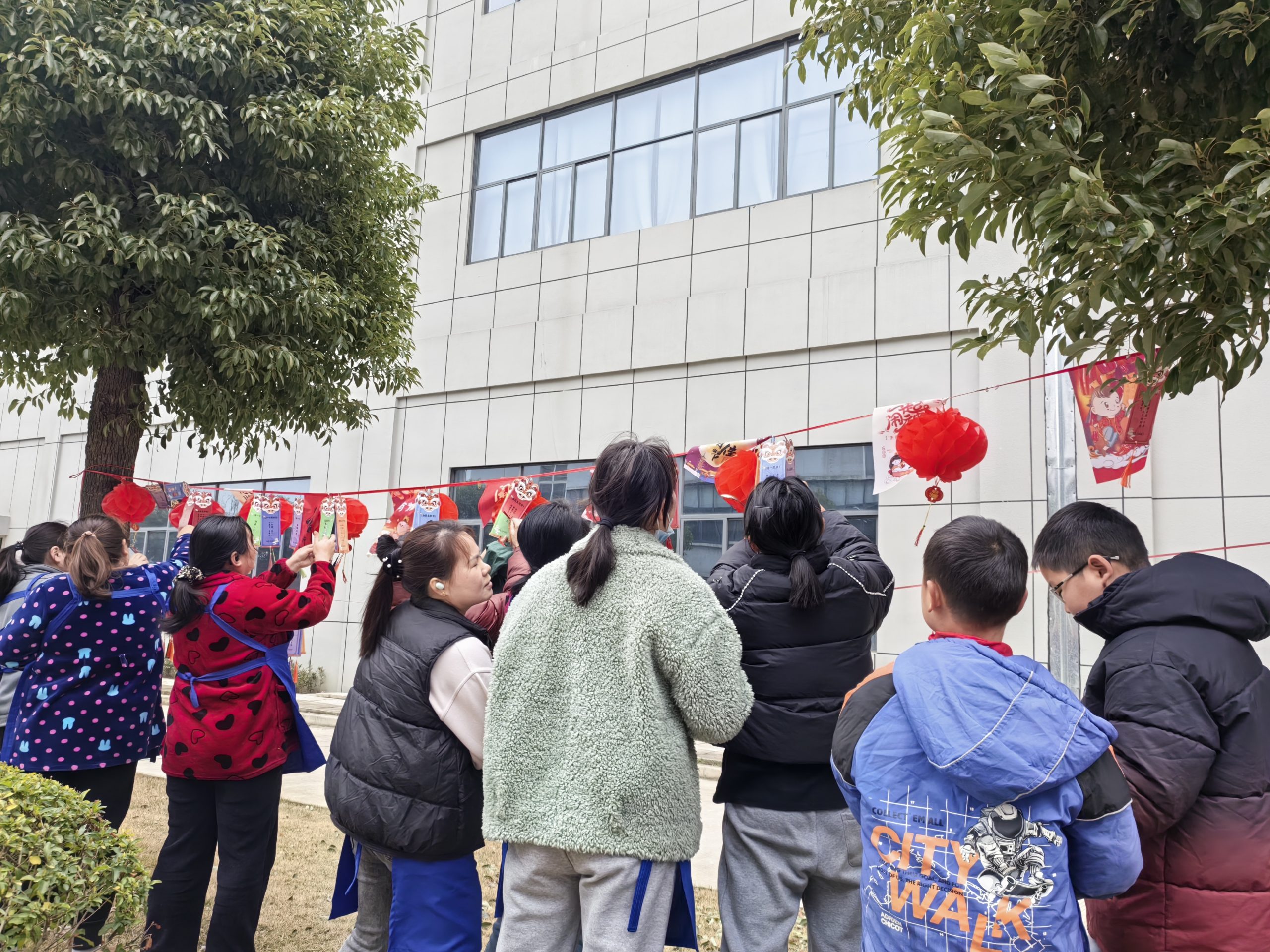 餐廳外停車區的樹上掛滿了幾百條燈謎,內容涵蓋傳統民俗、簡單字謎、成語謎以及少量公司文化、產品相關燈謎,難度適中、通俗易懂,兼顧了趣味性與知識性。活動現場反響熱烈,大家紛紛駐足排隊參與,有的獨自思考,有的三五成群討論謎底,氣氛十分活躍。猜到謎底的同事興奮地前往兌獎區領取獎品,兌獎區前有序排隊的身影,歡聲笑語的交流聲,成為元宵佳節里最動人的風景。