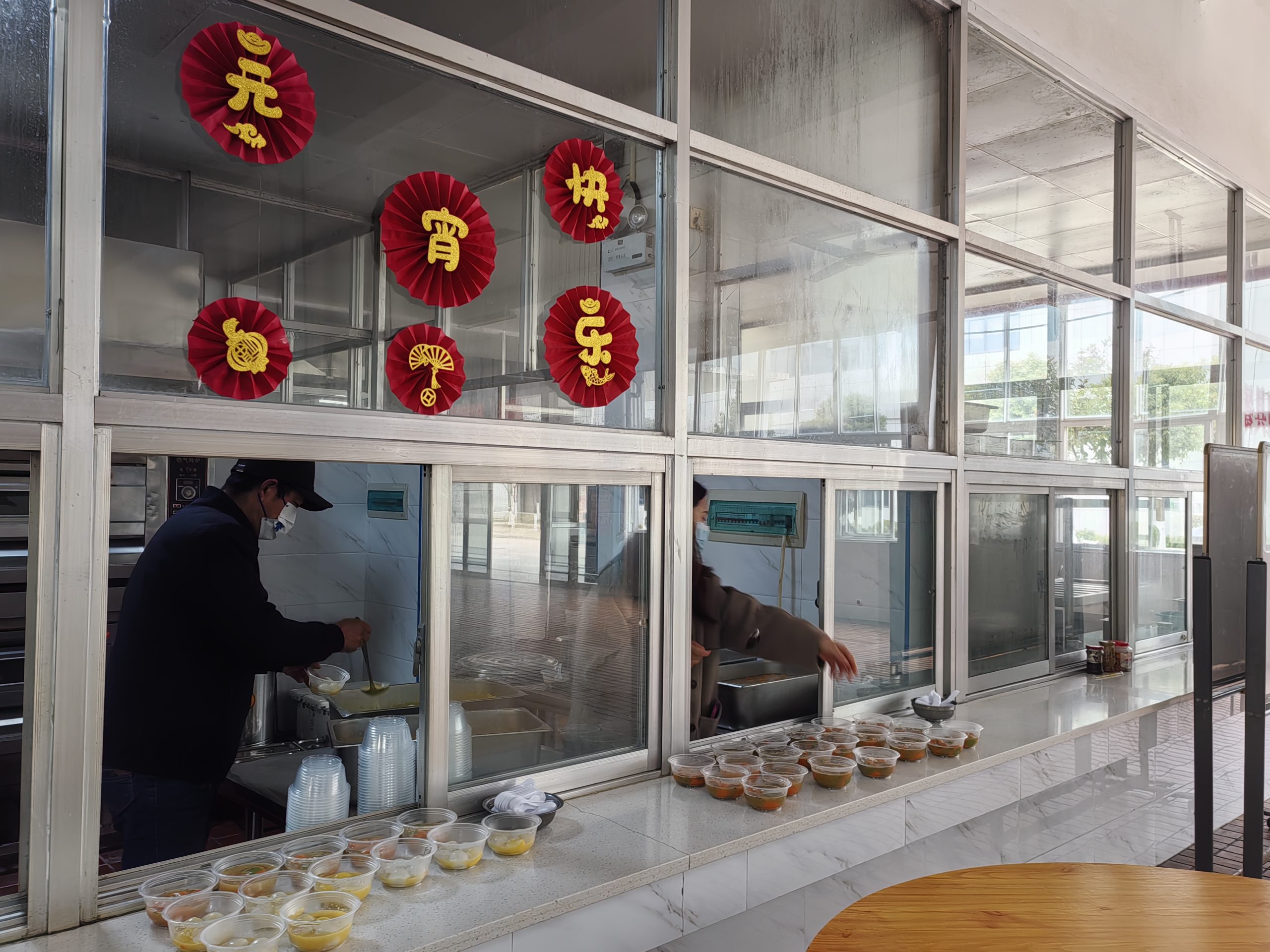 元宵節當天,燈謎條、紅燈籠、中國結等元素相互映襯,食堂入口張貼的元宵主題海報和燈籠擺件,以及活動期間播放的輕柔元宵主題音樂,都讓整個活動現場充滿了濃濃的節日氣息。餐廳在原有打餐窗口旁增設了兩個湯圓專屬加餐窗口,為每位就餐員工提供1份不同口味的元宵湯圓,分餐窗口張貼著“元宵快樂”“萌恒伴你過元宵”等溫馨標語,營造出濃厚的節日氛圍。大家有序排隊領取湯圓,臉上洋溢著幸福的笑容。不少員工表示,在元宵節當天能吃到暖心的湯圓,不僅感受到了節日的溫暖,更體會到了公司對員工的關懷。