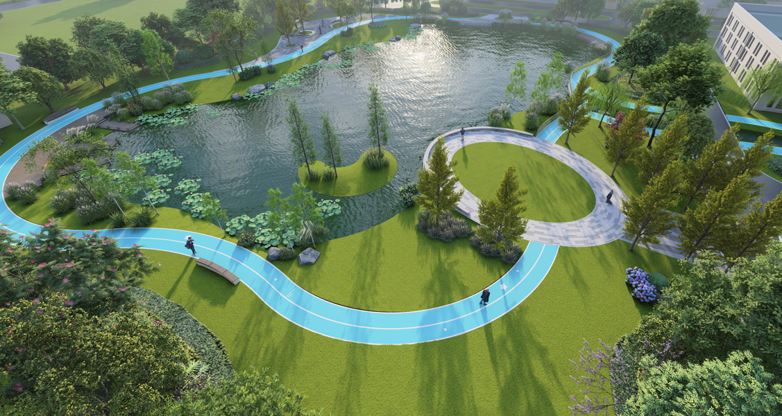 生活區景觀設計靈感來源于服裝工藝的“紋樣”與“色彩”,通過“一帶、兩軸、五區”的空間結構,將濱水休閑空間、文化休閑空間、運動康體空間等有機串聯。如今,綠化植被郁郁蔥蔥,路燈明亮溫馨,500米濱河漫步道與300米環形康體跑道交織成網,為員工提供了豐富的休閑運動選擇。陽光大草坪、木平臺、荷花池等景點更是成為員工放松身心的好去處。