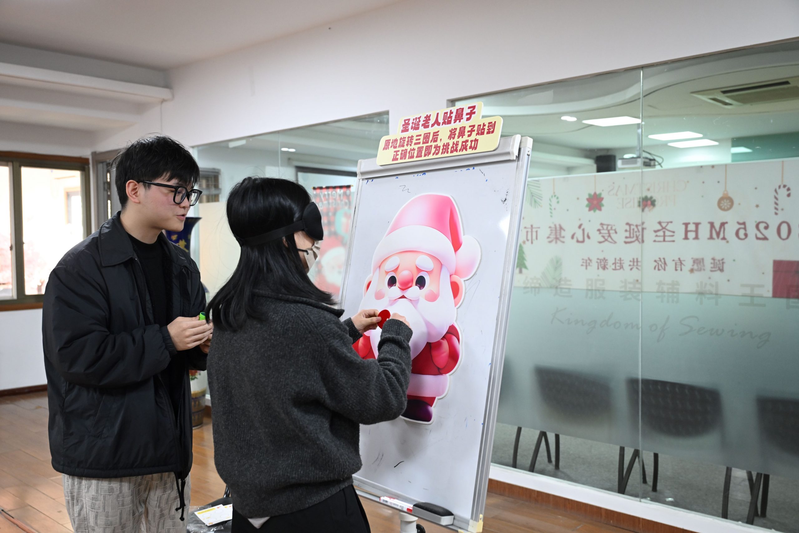 中午,公司活動區(qū)域聚滿了人。“圣誕釣蘋果”讓大家重拾童稚的專注,魚竿起落間,蘋果離開地面的那一刻,耳邊響起陣陣喝彩;和“圣誕樹”合影的小伙伴絡(luò)繹不絕,唯一不變的是每個人的臉上都洋溢著甜美的笑容;“圣誕老人貼鼻子”的游戲讓平日嚴(yán)謹(jǐn)?shù)耐抡宫F(xiàn)可愛的一面,蒙眼轉(zhuǎn)圈后的摸索前行,貼中時的歡呼與貼偏時的善意的笑聲,勾勒出這個午后最生動的線條。